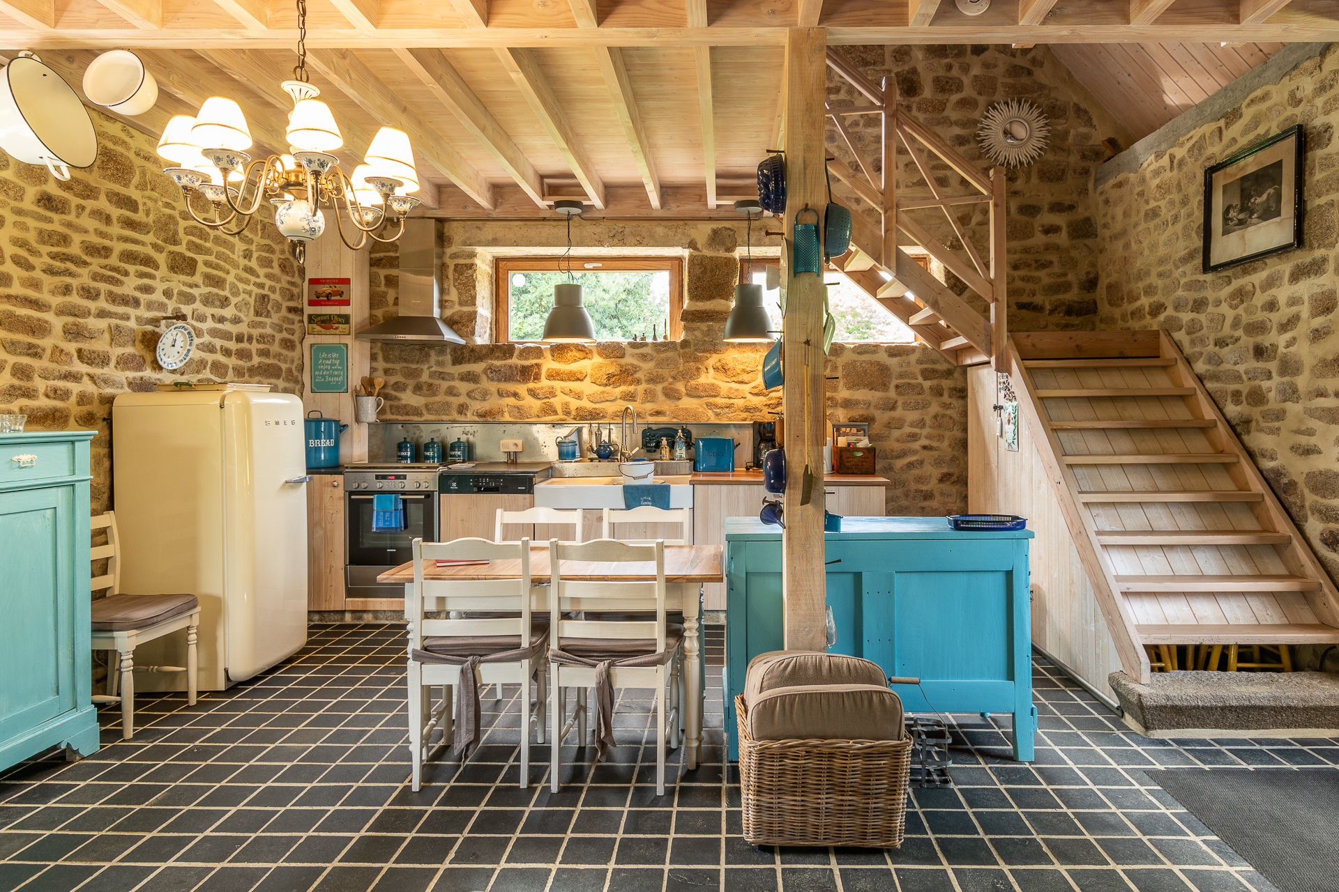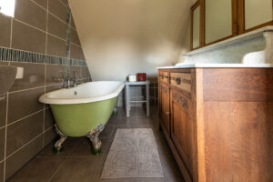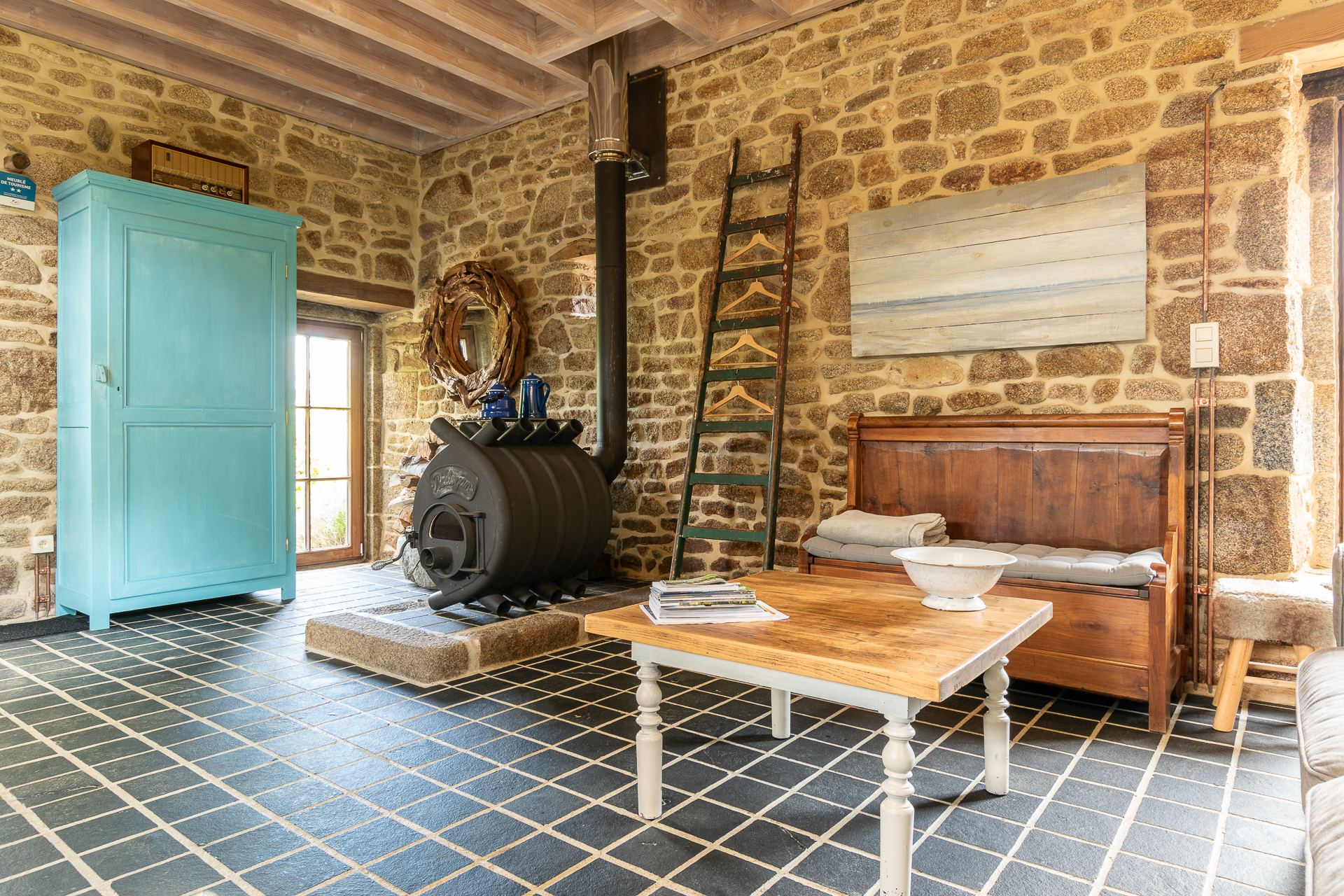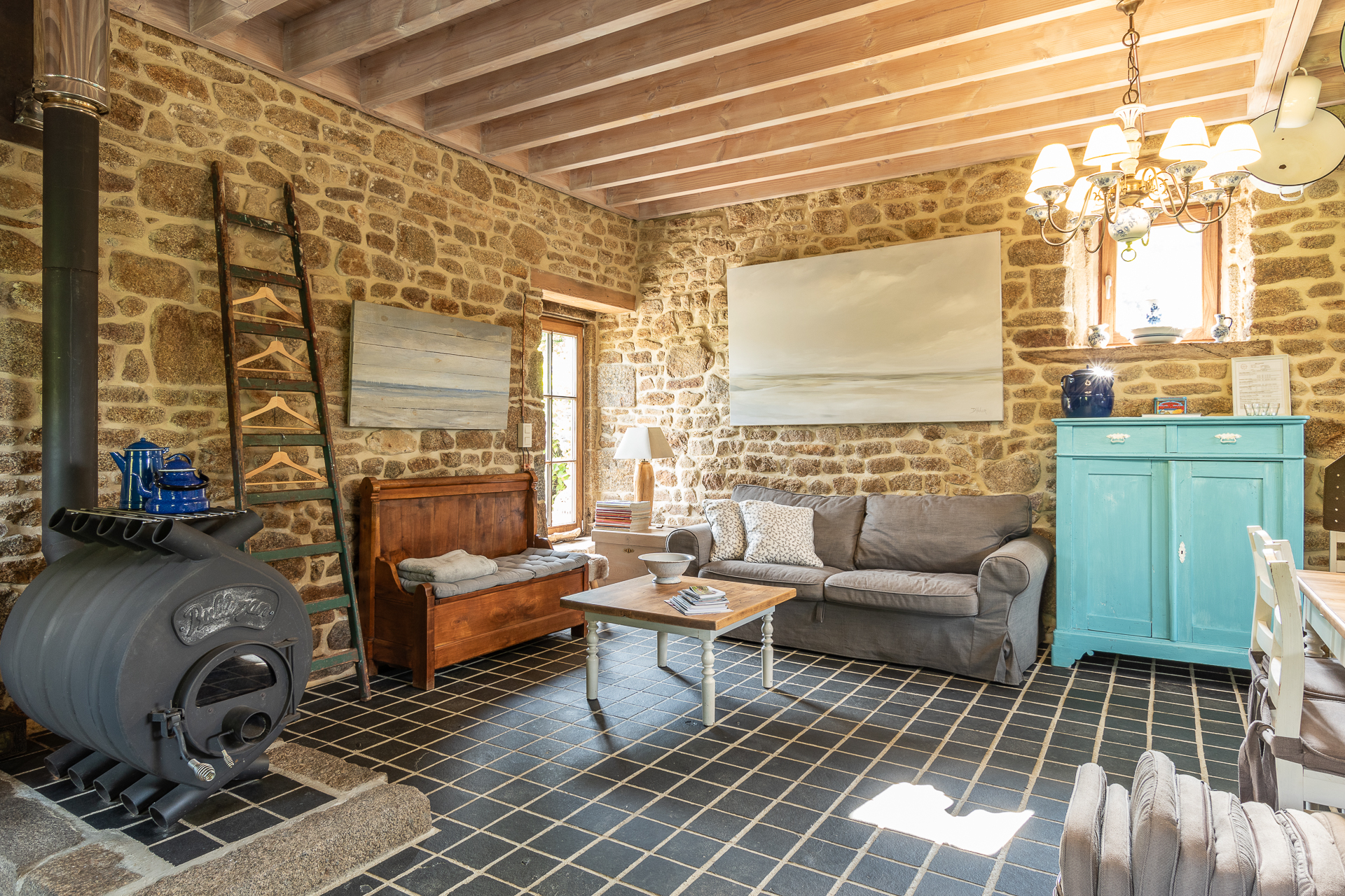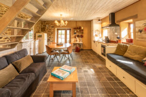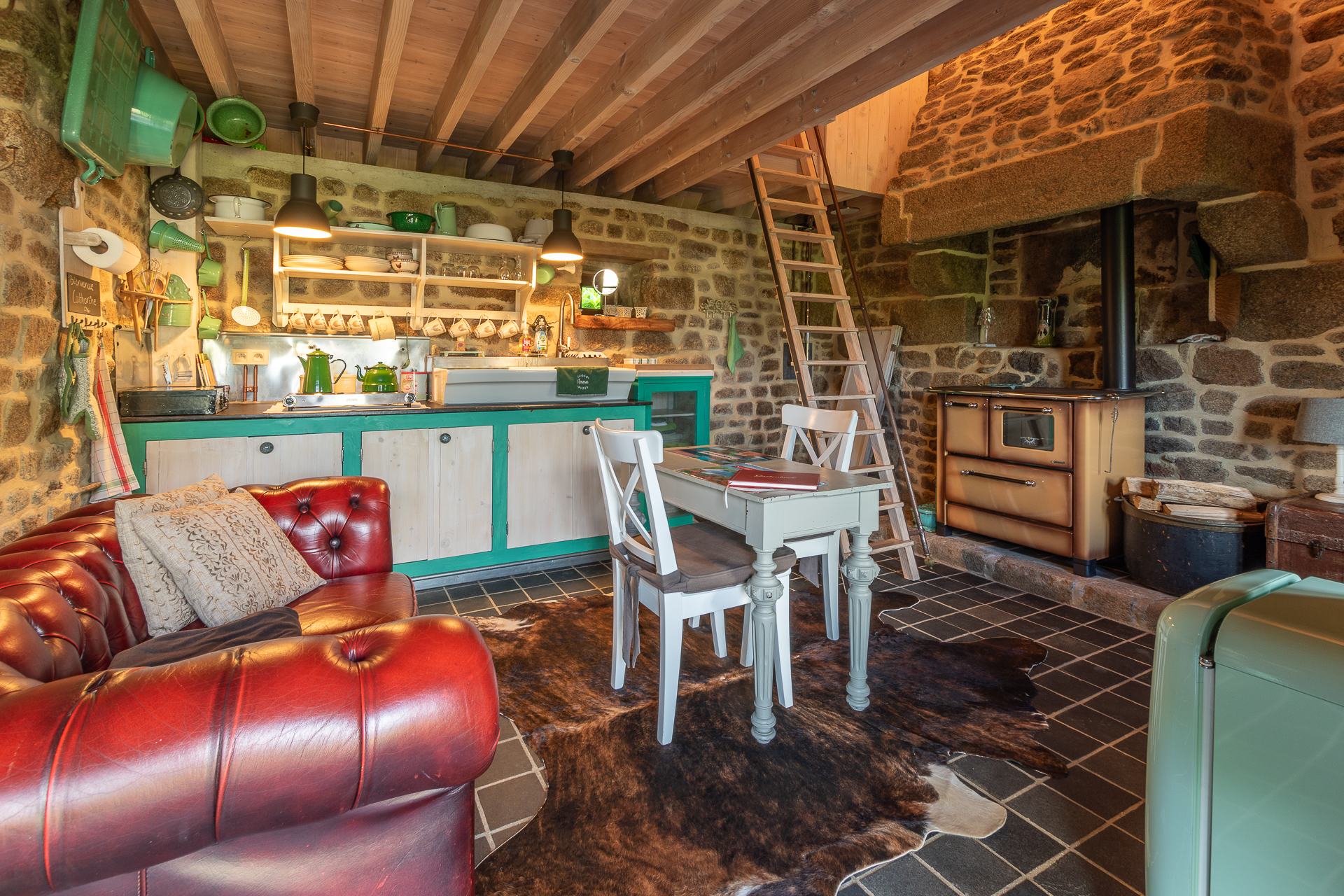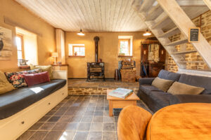 Biggest of the 4 houses, is a converted stable. Wood stove, complete kitchen, and sofa-bed downstairs. Mezzanine with a double bed and a characterful bathroom on the first floor. Outside is a large terras and a wood-heated hot-tub.