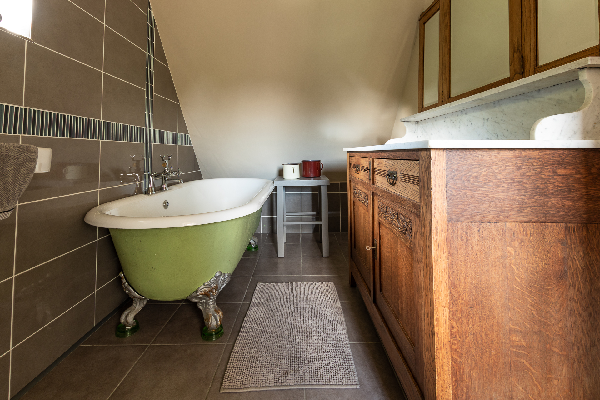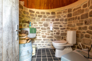 The toilet is installed in the original fireplace of the bread-oven.