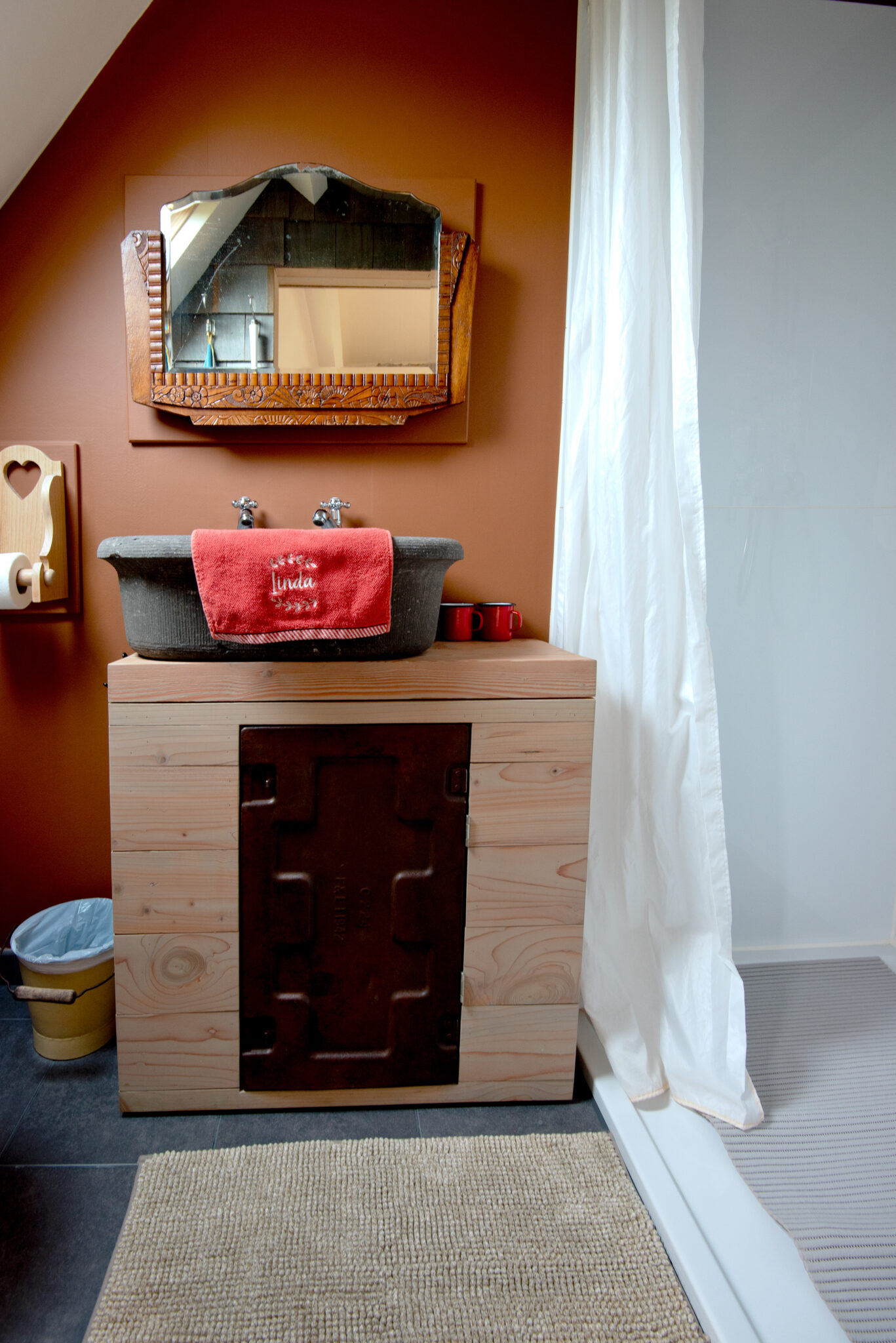 On the first floor, you have the bathroom with shower and divisible double bed.